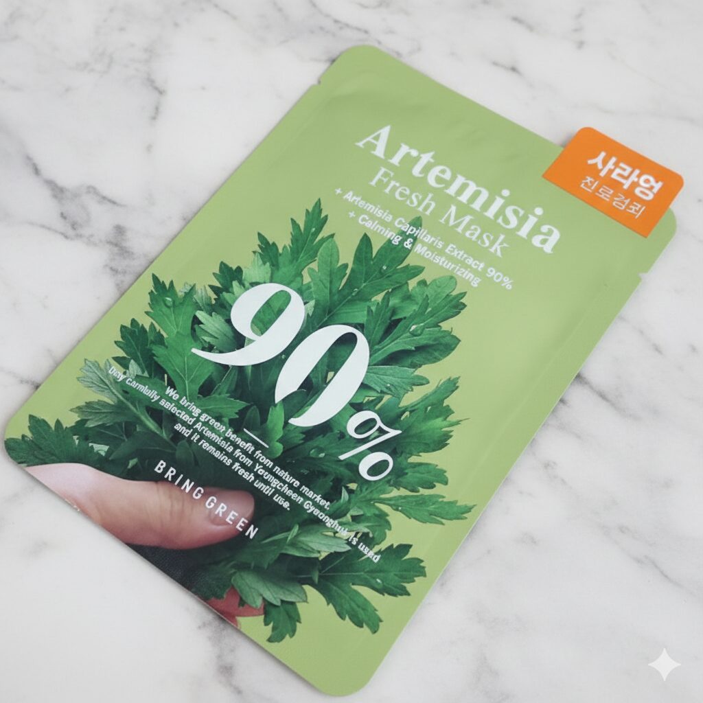 ブリンググリーン(BRING GREEN)の「カワラヨモギ フレッシュマスク(Artemisia Fresh Mask)」を使ってみました。低刺激極細ガーゼシートが柔らかく肌にフィットします。
